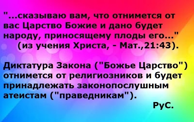 придерживающихся воинствующего атеизма, который основан на учении Христа. Это я доказываю в своей книге "Библия - идейная основа атеизма и совершенного общества" : http://proza.ru/2015/12/15/1688