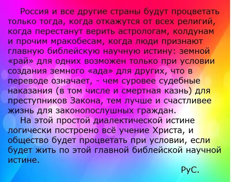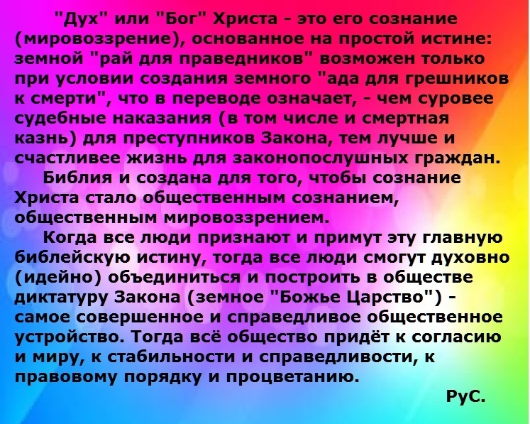 Давайте! Только я с Вами не согласен вообще! Читайте мою книгу - в ней обоснованная правда, потому что только мне удалось разрешить все противоречия в учении Христа. До меня никому не удавалось это сделать.