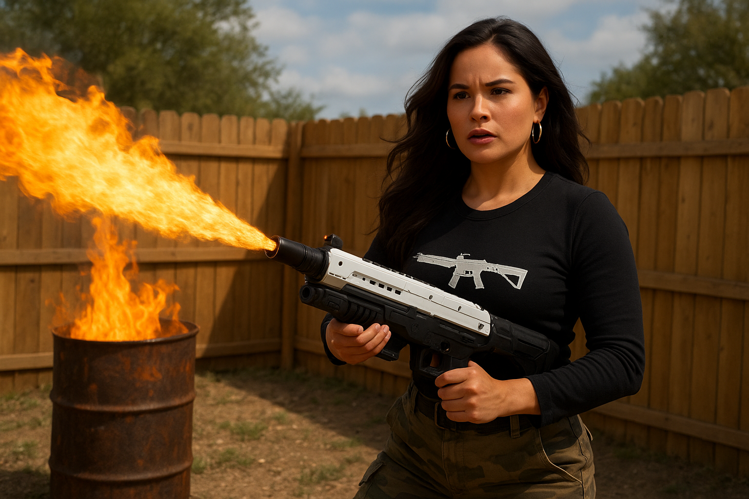 США, Техас. Валентина Гомес, 26-летняя кандидатка в Конгресс от Республиканской партии, решила, что обычного предвыборного ролика мало, и устроила настоящее шоу с огнемётом.