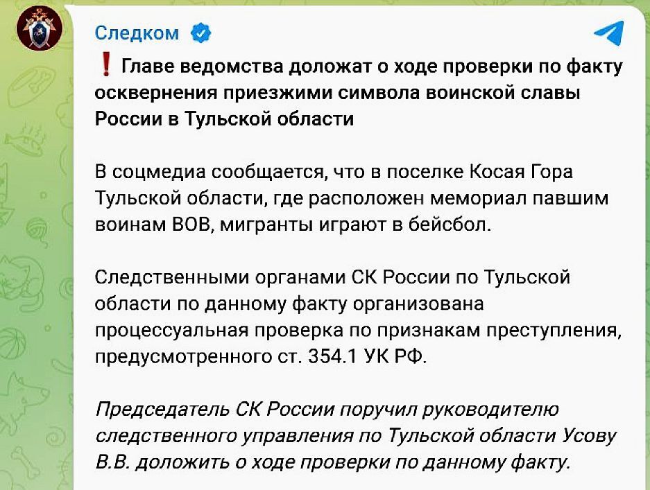Следственный Комитет не стал толерантно называть мигрантов азиатскими гостями и начал проверку осквернения захоронений в рамках статьи 354.1 Уголовного кодекса РФ.