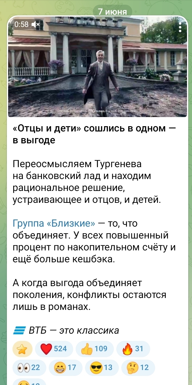 Книжный сюжет произведения "Отцы и дети" все прекрасно помнят, а в рекламе втб все выглядит совершенно иначе, бездарная реклама, из разряда "кручу верчу, запутать хочу".