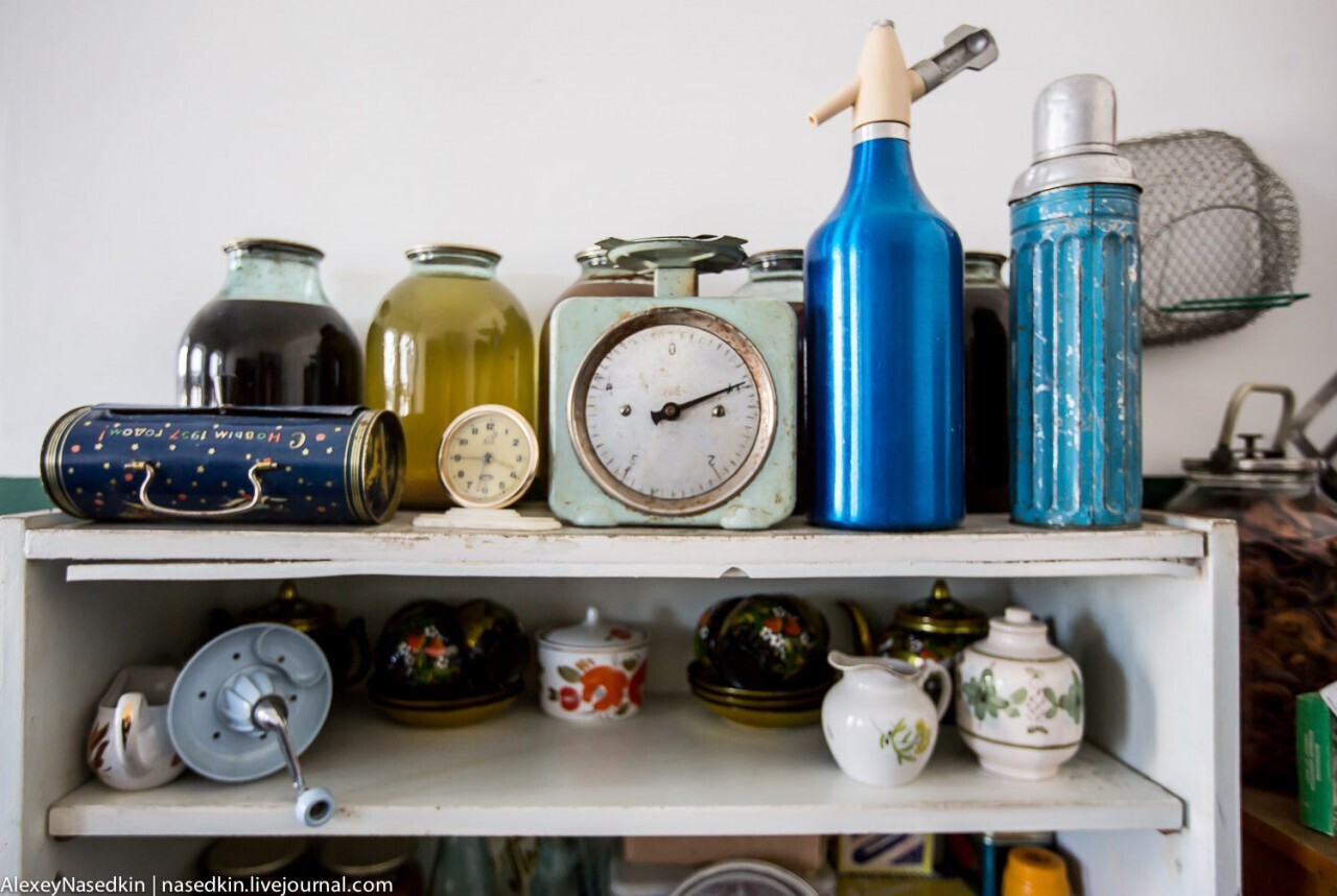У нас была утятница 1952г, была швейная машинка 1934г, советский сервант как машина времени.
