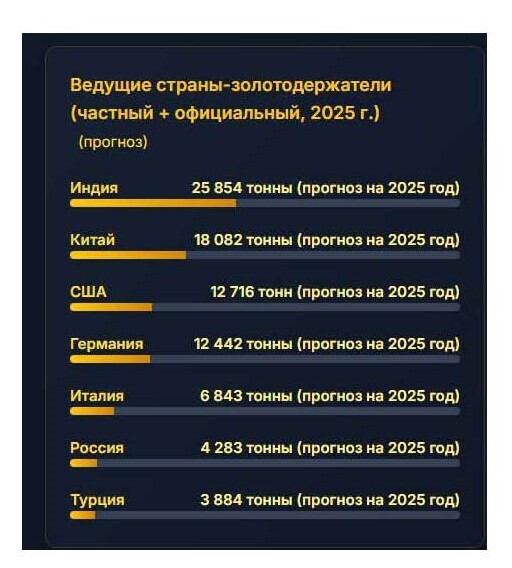 Как видно из приведённых цифр Индия первая, Китай второй, а США на третьем месте. Интересно, что в России порядка 2 тысяч тонн золота находится в частных руках, коррупционеров многовато. У кого золотые часы, у кого золотой унитаз.