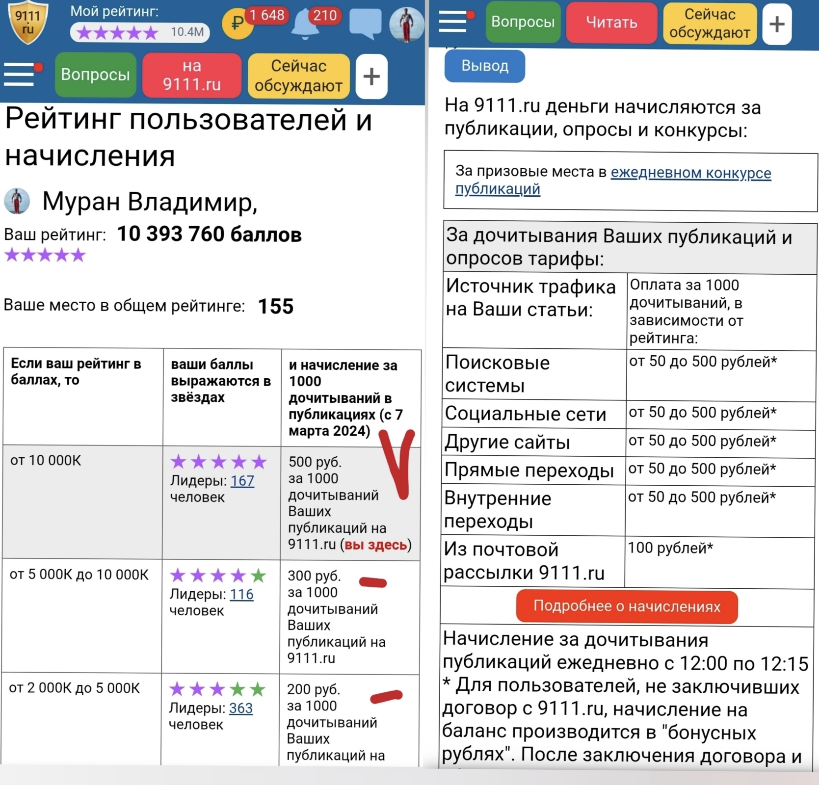 Знаете возможно кто то и зарабатывает много денег на платформе 9111 хотя я таких не знаю, но большинство думаю копейки получают, у меня максимальный доход 3 рублей в день и это необходимо каждый день статьи загружать, который много времени отнимают ,но то что сразу тут какие то копейки получаешь без порога входа монетизации в отличие от других платформ , это да преимущество есть, но опять таки копейки заработаешь