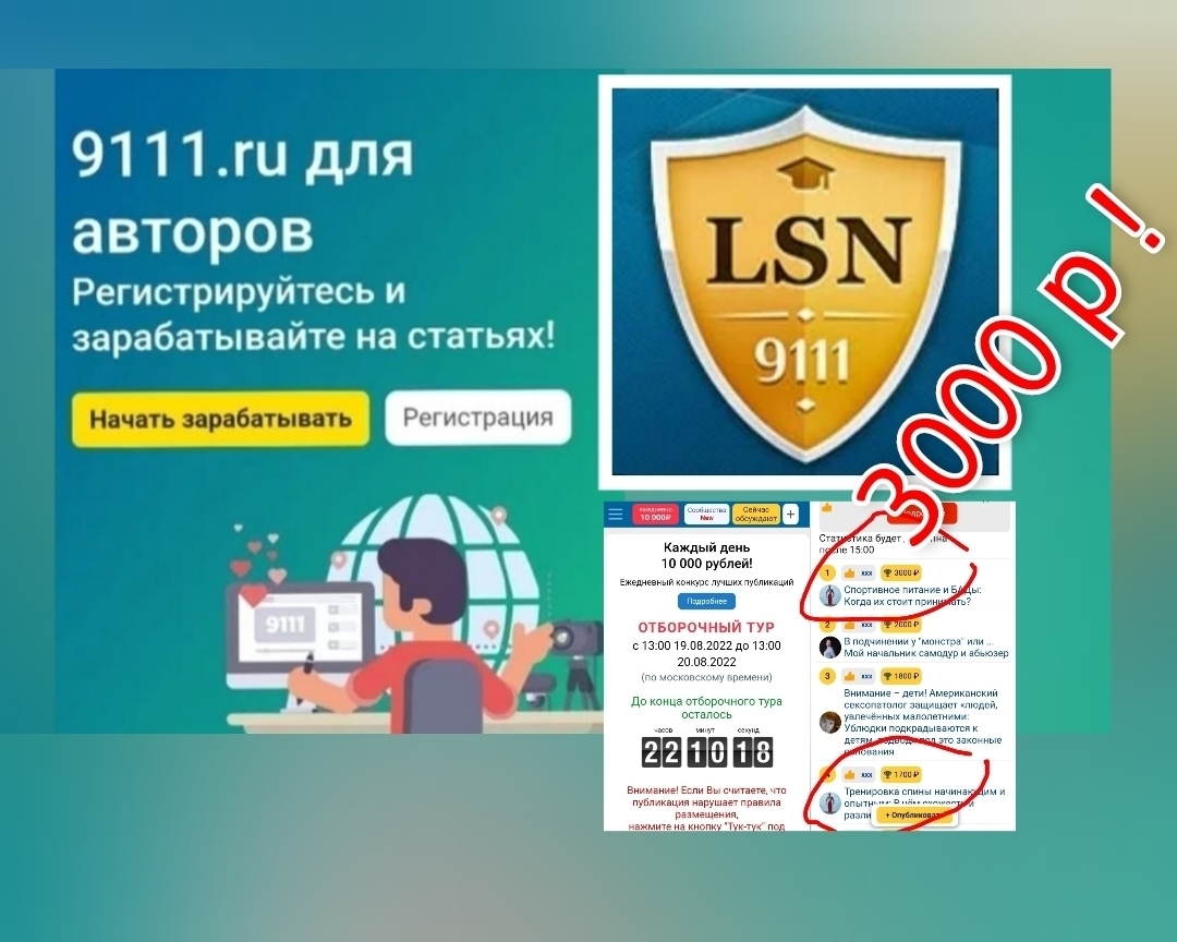 Но кроме всего этого на сайте 9111. ru есть конкурс публикаций где лучшие ТОП 30 статей получают ежедневно денежные призы от 50 до 1500 рублей!