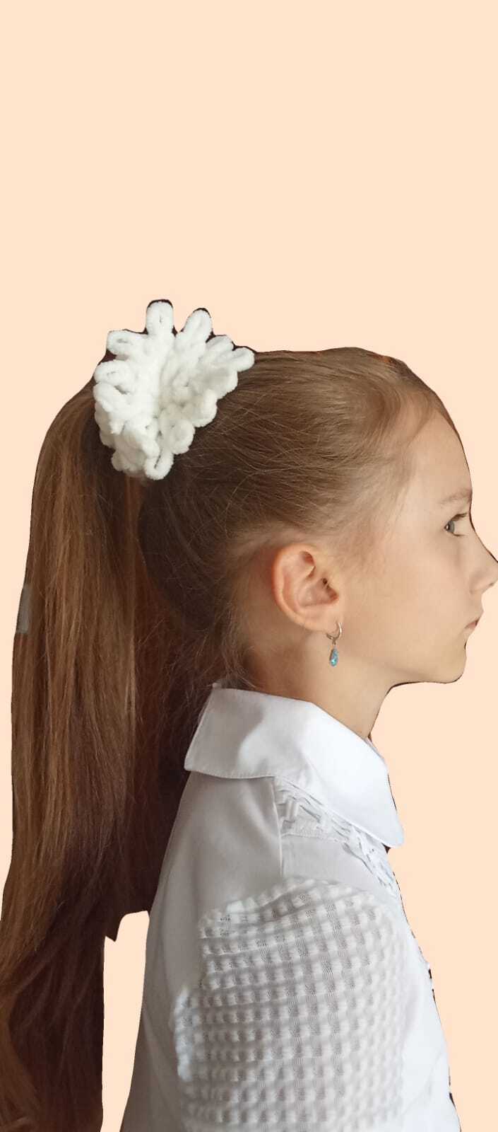 Резинка для объёмного хвоста из пуфи пряжи к 1 сентября - моё полезное хобби
