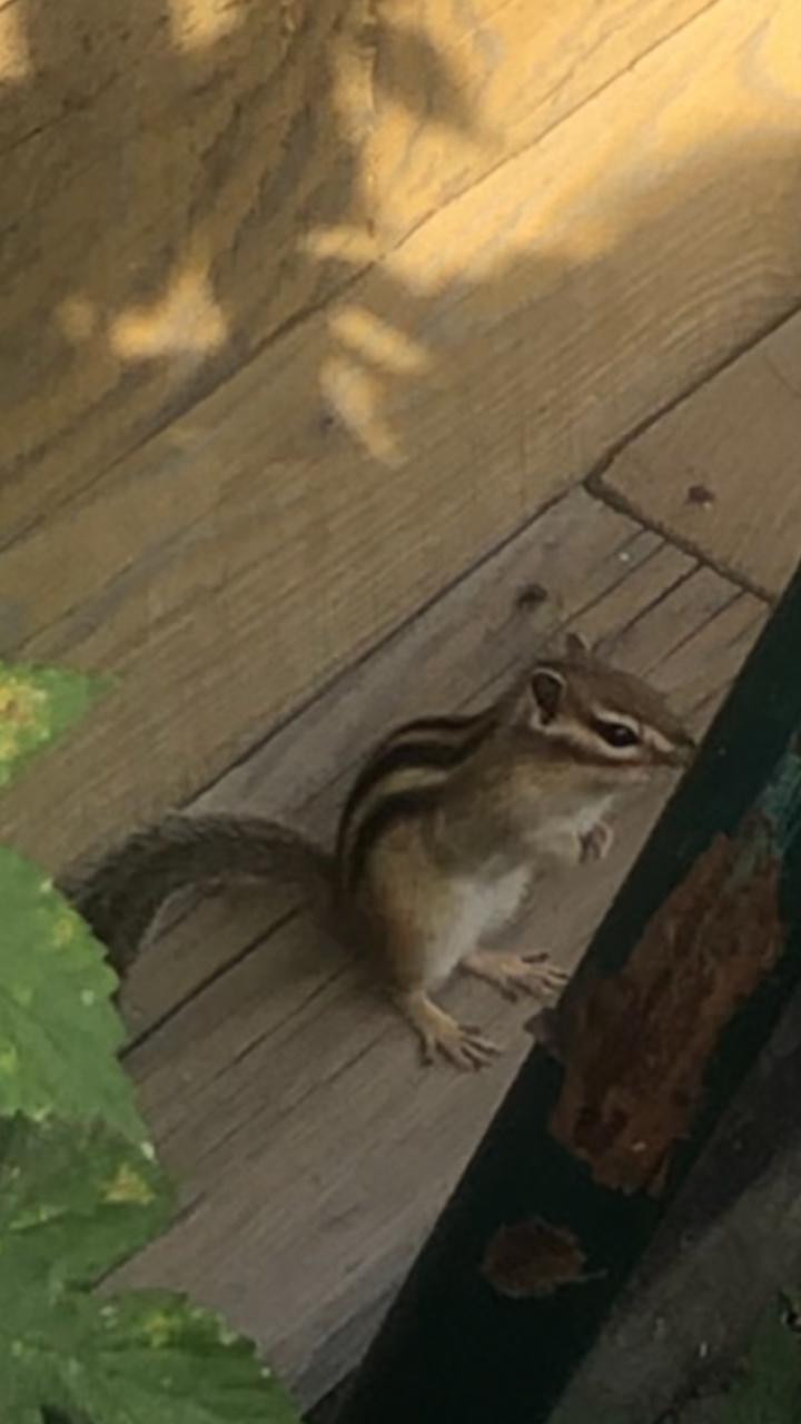 Вообще неожиданно появился... Какой-то шорох, присмотрелся, мать моя женщина... Дружище Дейл вернулся на хозяйство... Орешек надо куда-нибудь насыпать. Подкормить перед зимовкой. Говорят они легко приручаются. Не понимаю как? Ведь они шустряки.