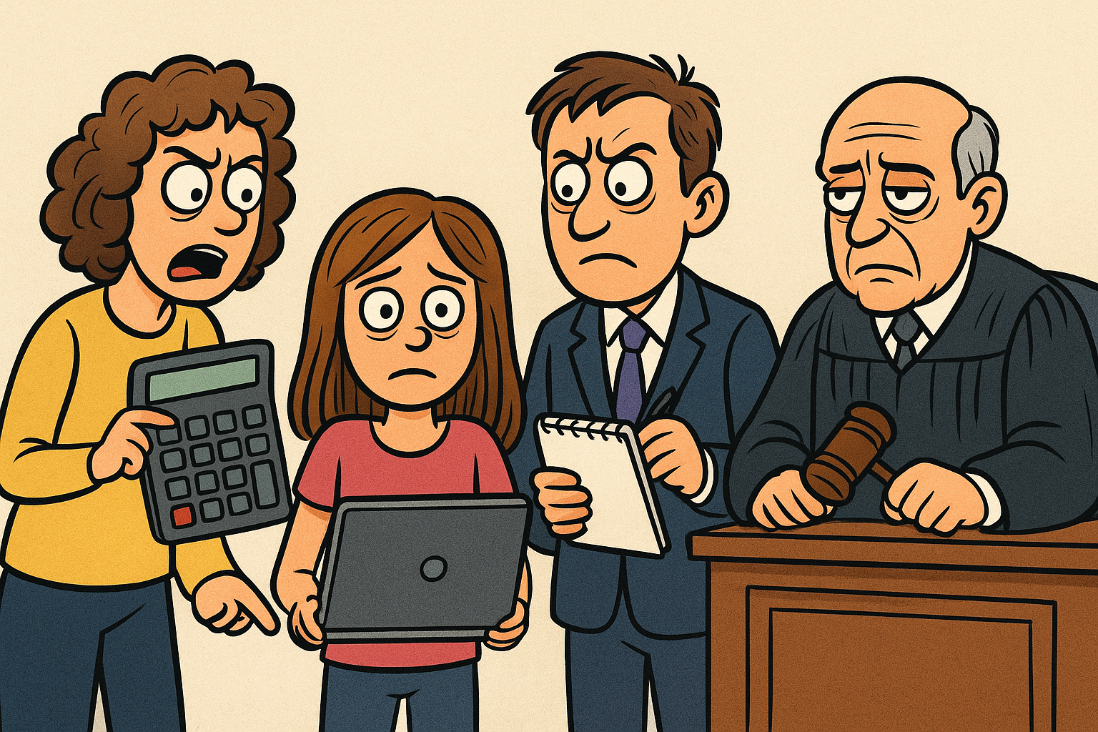 — Ваша честь! — торжественно произнесла мать. — В 2004 году мы оплачивали её учёбу, снимали комнату у бабушки, покупали ноутбук! Мы требуем возмещения за обучение, ноутбук, питание и... недополученную радость.
