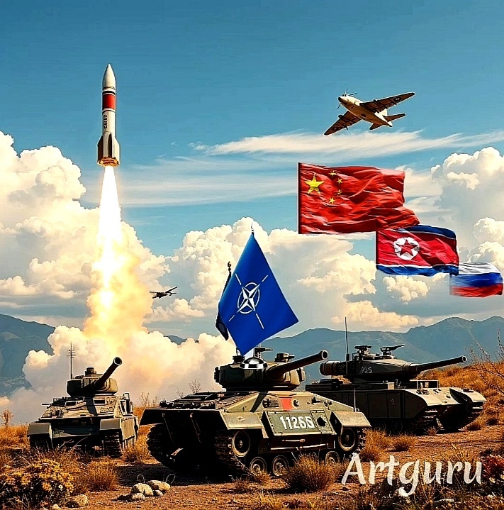 И так совокупная армия трех держав - это около 5 млн солдат, 4 млн резервистов и более 700 млн человек годных для службы (вот это цифры). Кроме всего этого танков на 3 тыс больше и намного больше морской флот. Да и ядерных боеголовок у Москвы, Пекина и Пхеньяна больше - 6000 штук, что создаёт мощный ударный "кулак" для этих государств.