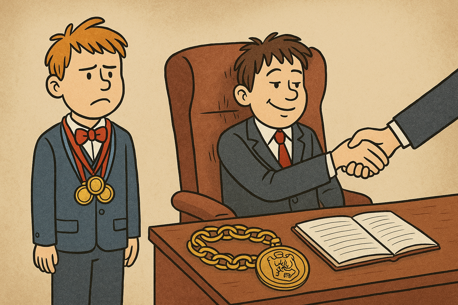 «Из отличников выходят отличники, а из троечников мэры и руководители регионов», — произнёс он с лёгкой улыбкой, и в этот момент где-то в третьем ряду кто-то тихо пересчитал свои оценки, будто прикидывая, на сколько мест хватит троек, чтобы однажды возглавить город.