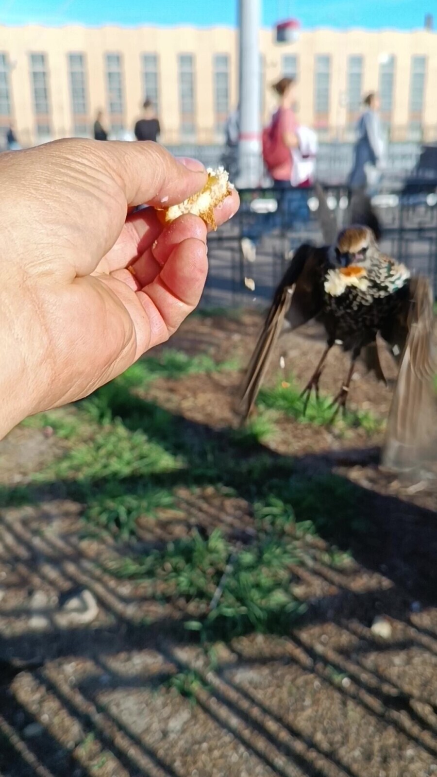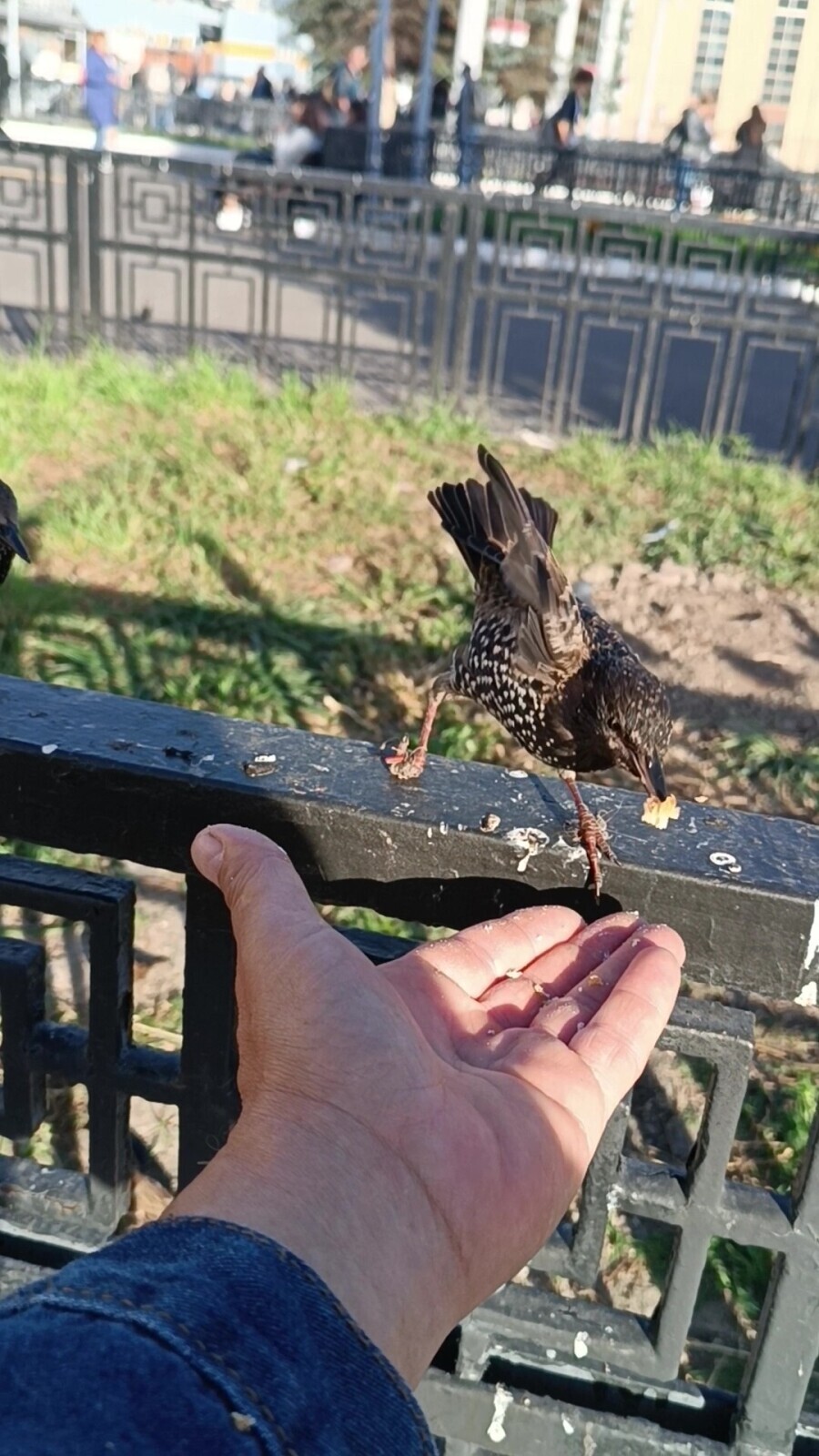 В Питере на Балтийском вокзале дрозды с рук едят. Воробьи и голуби тоже.