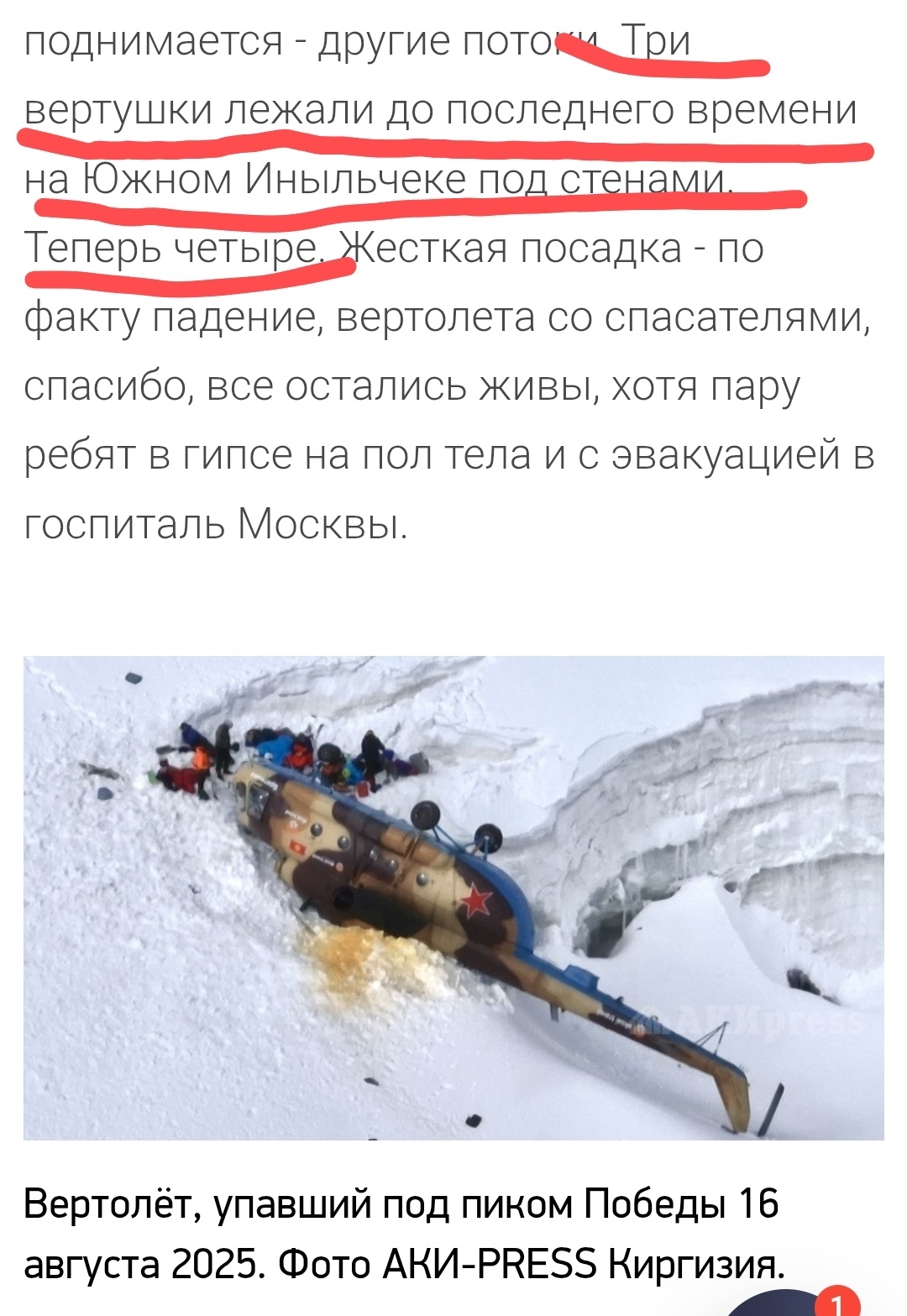 И они продают! Вот сходила группа из 5 человек, которые сами соорганизовались (я про группу Натальи), это уже минимум 9000$. Страховое покрытие в сумме 150000$, так как меньше 30000$ нельзя и тф не продаст. И вот на эту группу выделяют 1 вертолёт 16.08, он падает. Нам рассказывают в итоге, что операция спасения уже обошлась в 100000$.