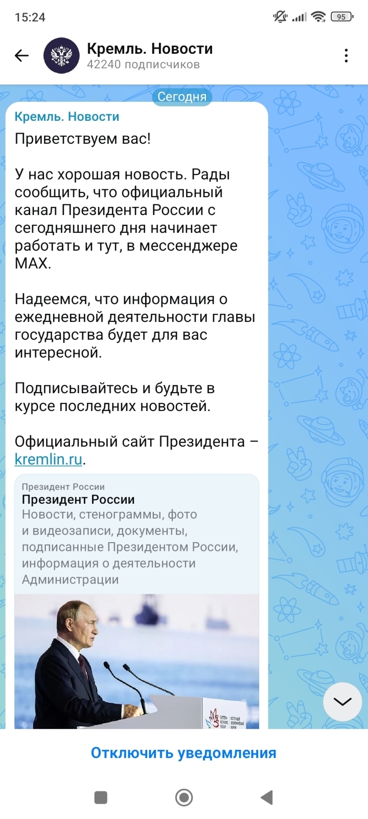 Официальный канал Владимира Путина начал работу в российском мессенджере Max, сегодня, 8 сентября и уже набрал 40 тысяч подписчиков.
