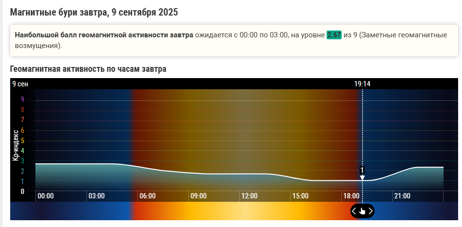 Магнитная  буря 9 и 10 сентября 2025: Минимальный Риск Геомагнитной Активности