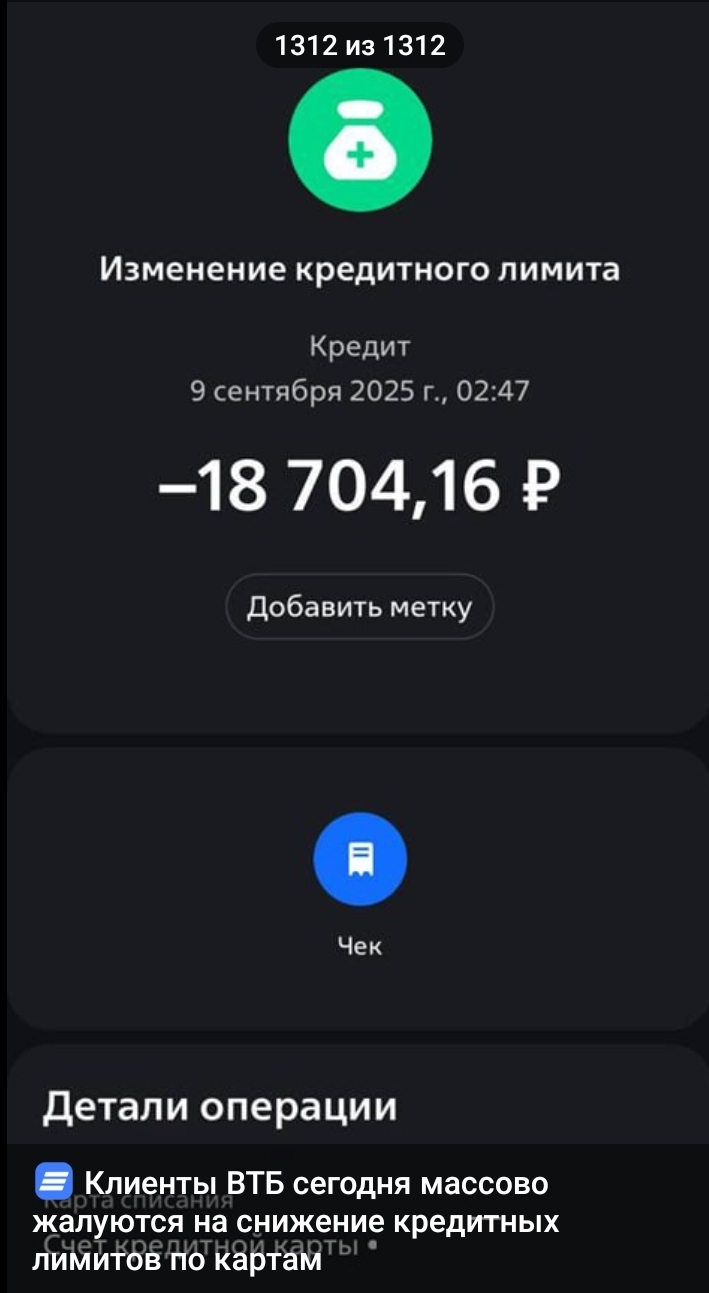 ВТБ: удар под дых. Массовое снижение лимитов по кредиткам. 9сен25