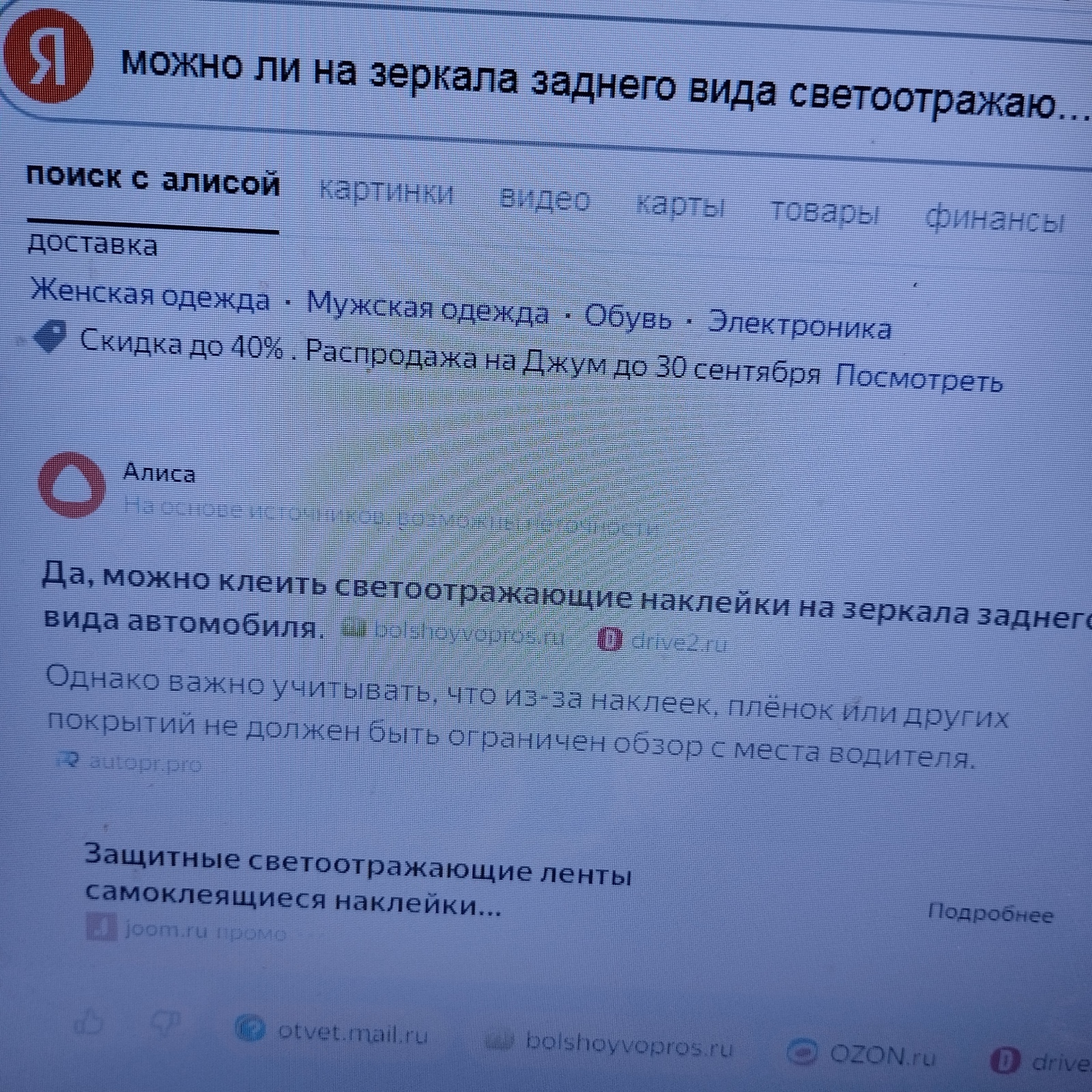 Это точно, когда права купил, а ездить не купил. Поэтому и обозначила наклейками ТС, чтобы "не купил" не въехал в темноте. По цвету, возможно лучше нейтральные (белые или желтые), т к пишут иногда, что красные нарушают правила. "Алиса" пишет общее - можно