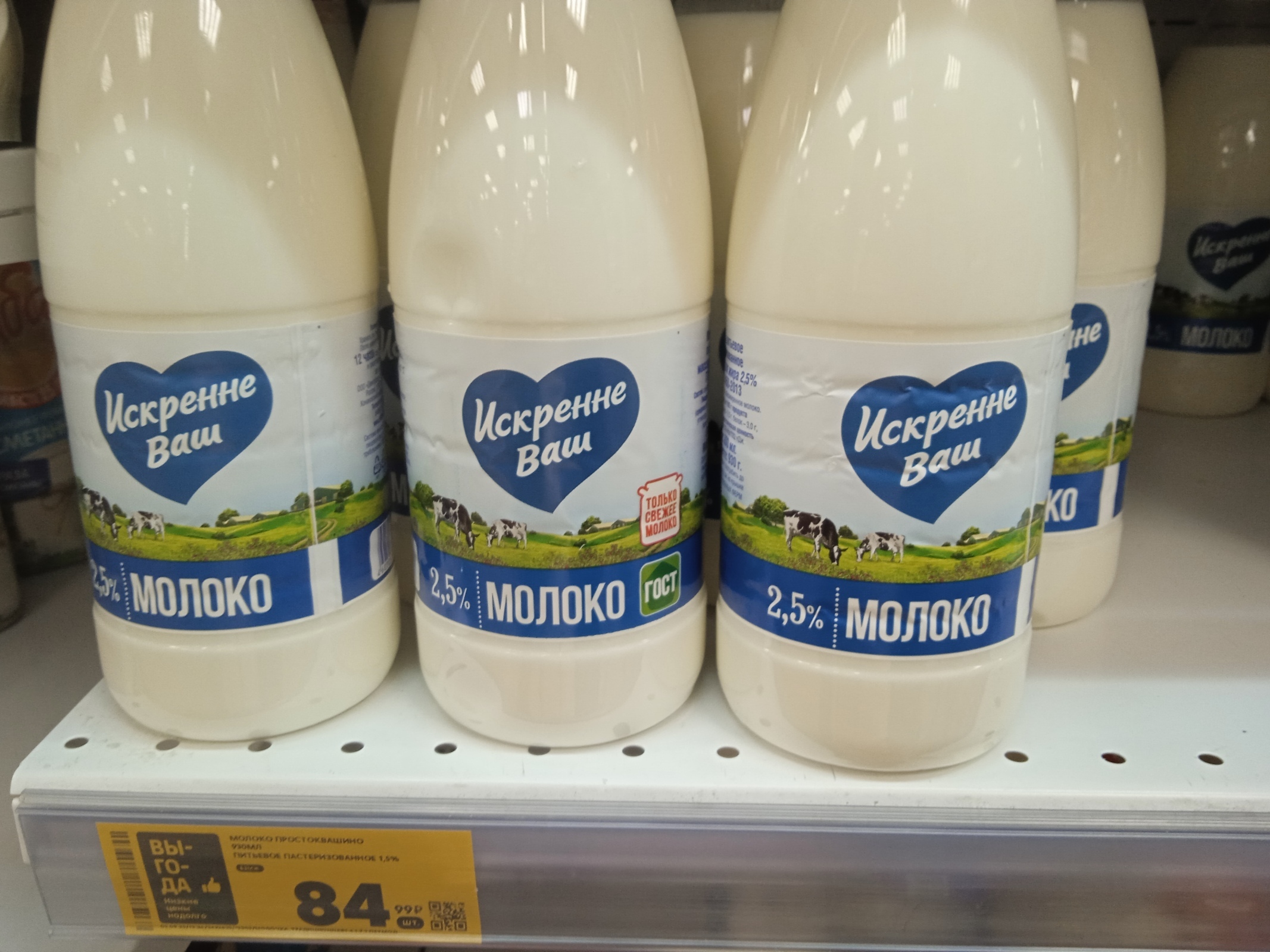 - Молоко пастеризованное ИСКРЕННЕ ВАШ 2,5%, без змж, 930г;