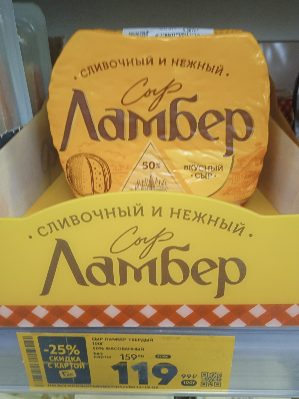 - Сыр ЛАМБЕР оказался по цене 600 рублей за килограмм;