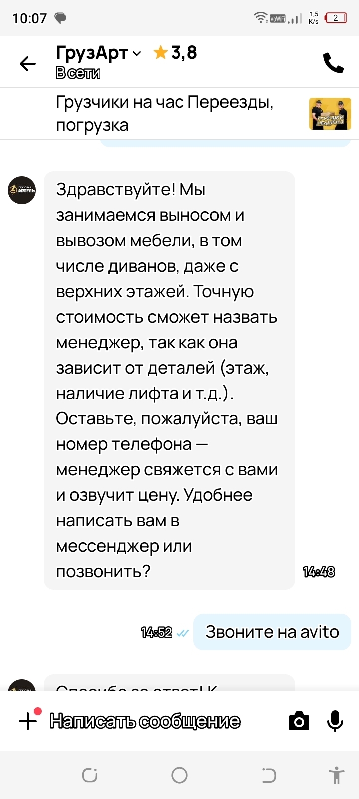 Наученная горьким опытом начала писать всем грузчикам подряд, чтобы узнать о ценах на их услуги. Я прекрасно осознавала, что такая работа займёт минут 15 и для мужчин трудностей не предоставит, но стоимость услуги, на мой взгляд, оказалась завышенной.