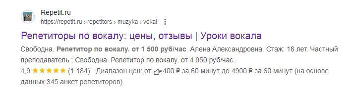Нашел я в интернете цены на услуги репетиторов по вокалу.