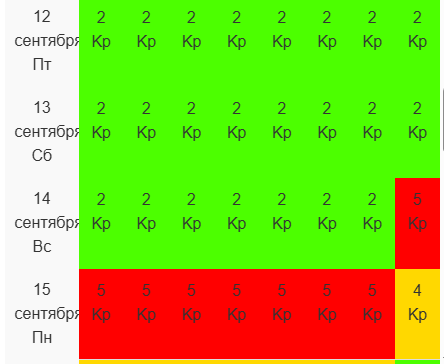 12 сентября: Ожидается умеренная геомагнитная активность.