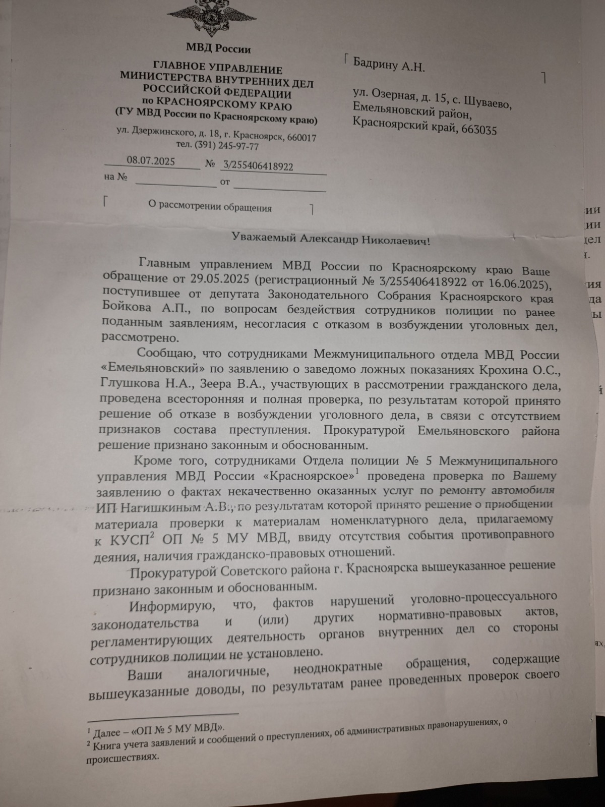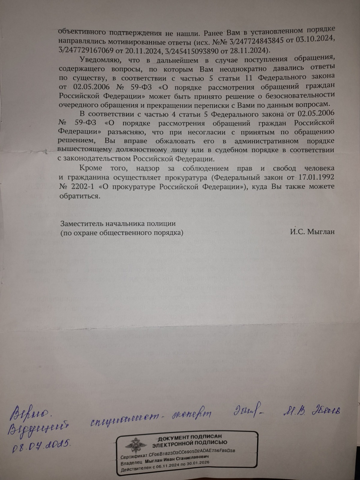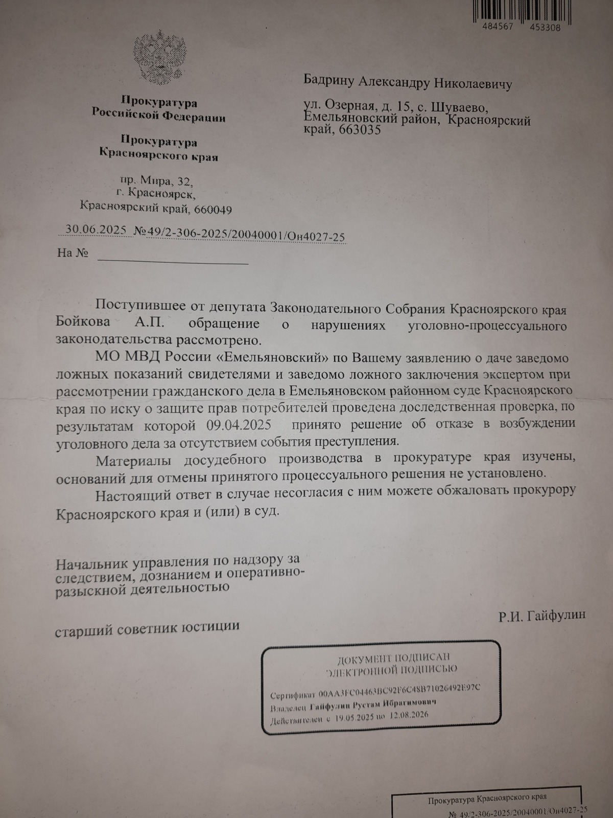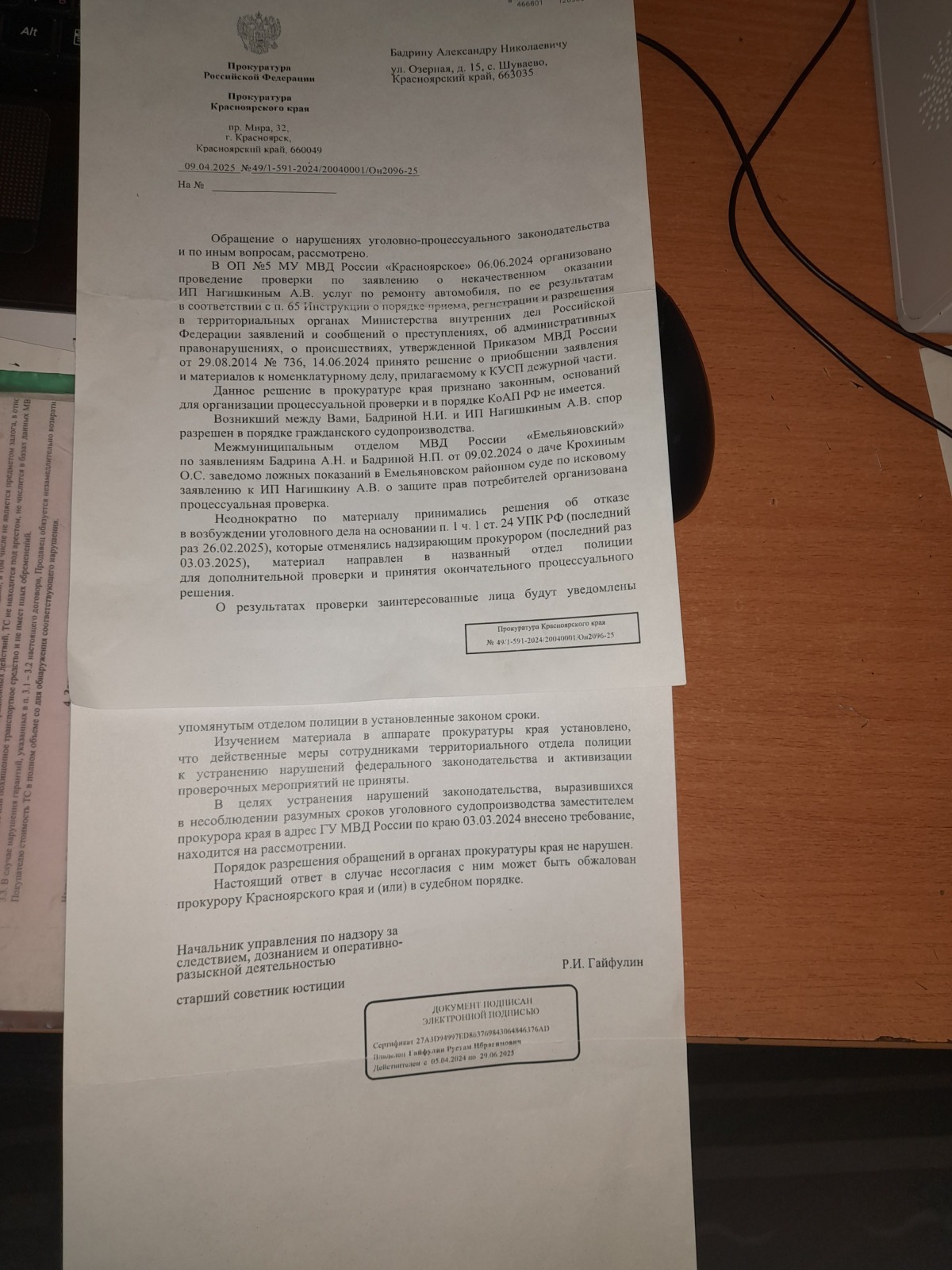 Прокуратура только делала видимость надзора В отношении участковых жалобы рассмотрены www.9111.ru. И в результате два документа прокуратуры края с вынесением двух противоположных решений 09.04.2025 года.Какому документу верить?