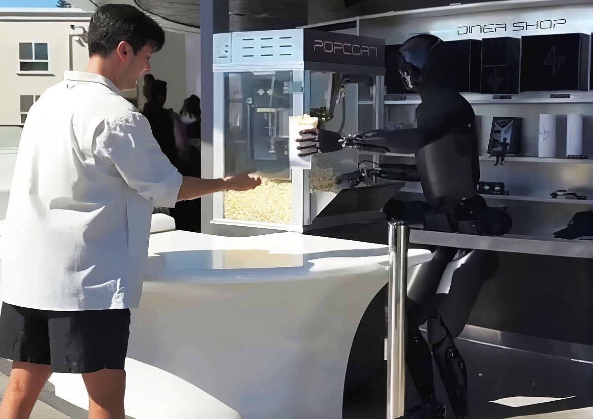 И такой здоровый робот продаёт попкорн. Китайцы совсем зажрались.