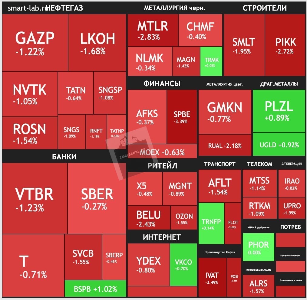 Российский рынок акций покраснел от несмелого решения ЦБ понизить ставку всего на один пункт