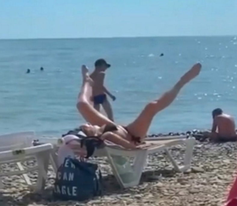 Девушки на пляжах Крыма, широко раздвинув ноги, загорают без тревоги.