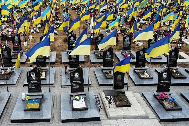 Участки на украинских кладбищах, отведенные под захоронения военнослужащих, полностью заполнены, пишет французская газета Le Monde.