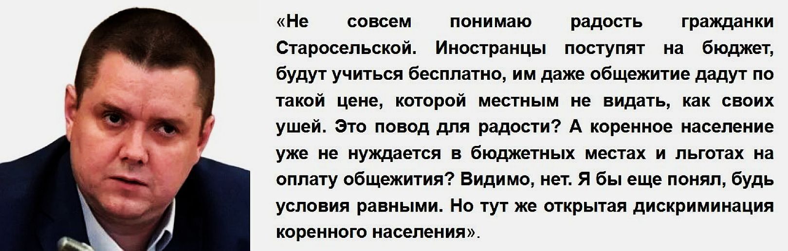 Квоты на лечение больных не выбить, а сотни иностранных граждан по квотам учить -- пожалуйста! Плюс стипендии, плюс бесплатное проживание в общежитиях! Это не укладывается в голове у нормальных россиян!