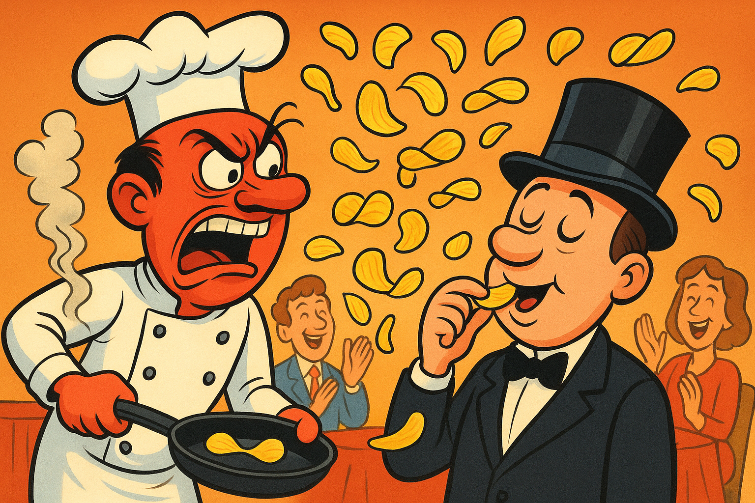 Так, в порыве чистого раздражения, Джордж Крам изобрел не просто новое блюдо, а гастрономического монстра, который, вырвавшись из кухни «Moon's Lake House», отправился завоевывать мир.