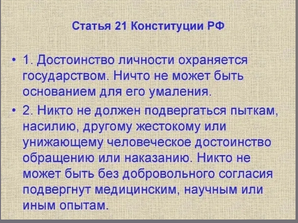 ниже скинули статью 21 Конституции РФ - она точно подойдёт.