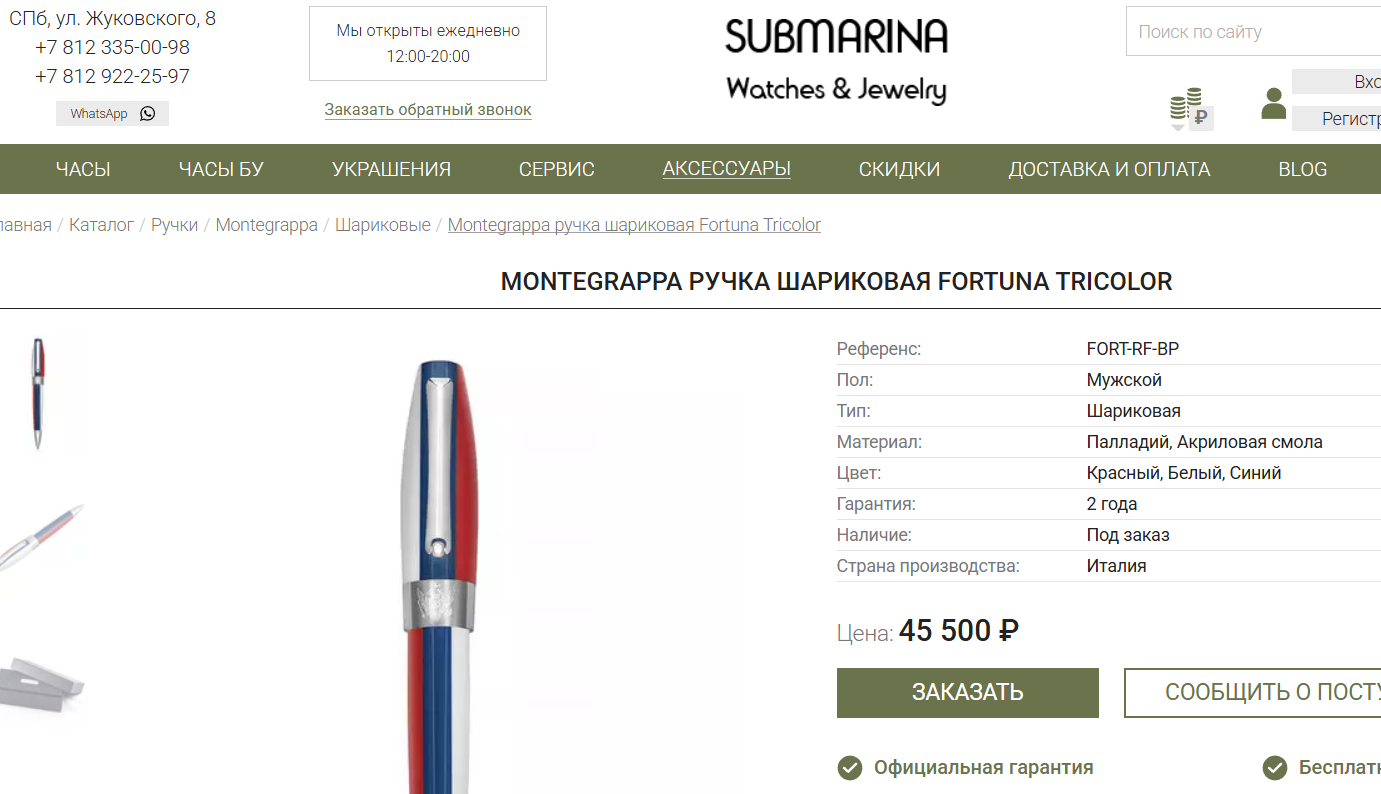 А ведь такие ручки можно купить намного дешевле. Вот здесь, например, цена — 45 500 рублей.
