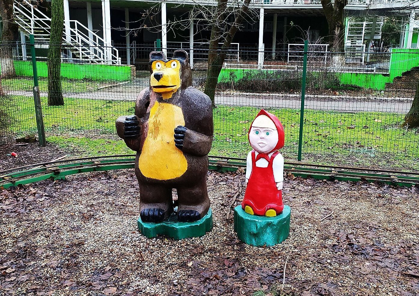 Хочется отметить, что глубочайшая тема дружбы маленькой Маши и огромного Медведя давно будоражит творческие умы. Вот одноимённая композиция, выставленная на радость детишкам в городе Ейск.