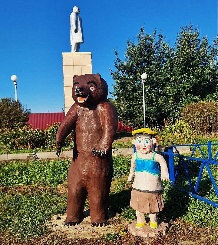 На детской площадке села Вальдиватское Ульяновской области появилась скульптурная композиция «Маша и Медведь» в интерпретации ещё невиданной ценителями изящного искусства.
