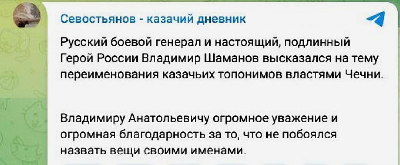 Генерал Шаманов резко осудил переименование казачьих станиц в Чечне. Депутат прав?
