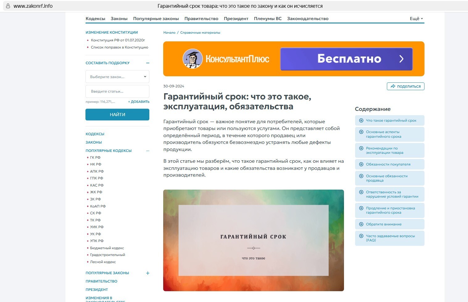 - Если товар поступил на ремонт, то срок гарантии приостанавливается, и возобновляется после возврата товара покупателю;