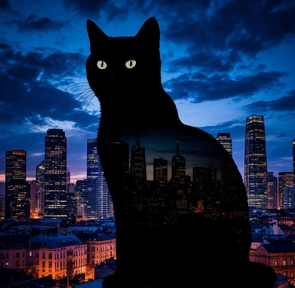 Ночь-Кошка — нежная, манящая, загадочная. Она скребется в дверь, желая войти, поделиться своей тихой магией.