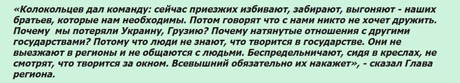 Вот 3 цитаты, из заявления Кадырова, сделанного в начале декабря прошлого года, с сурового сайта Грозный Информ, который всегда требует ссылку на самого себя.
