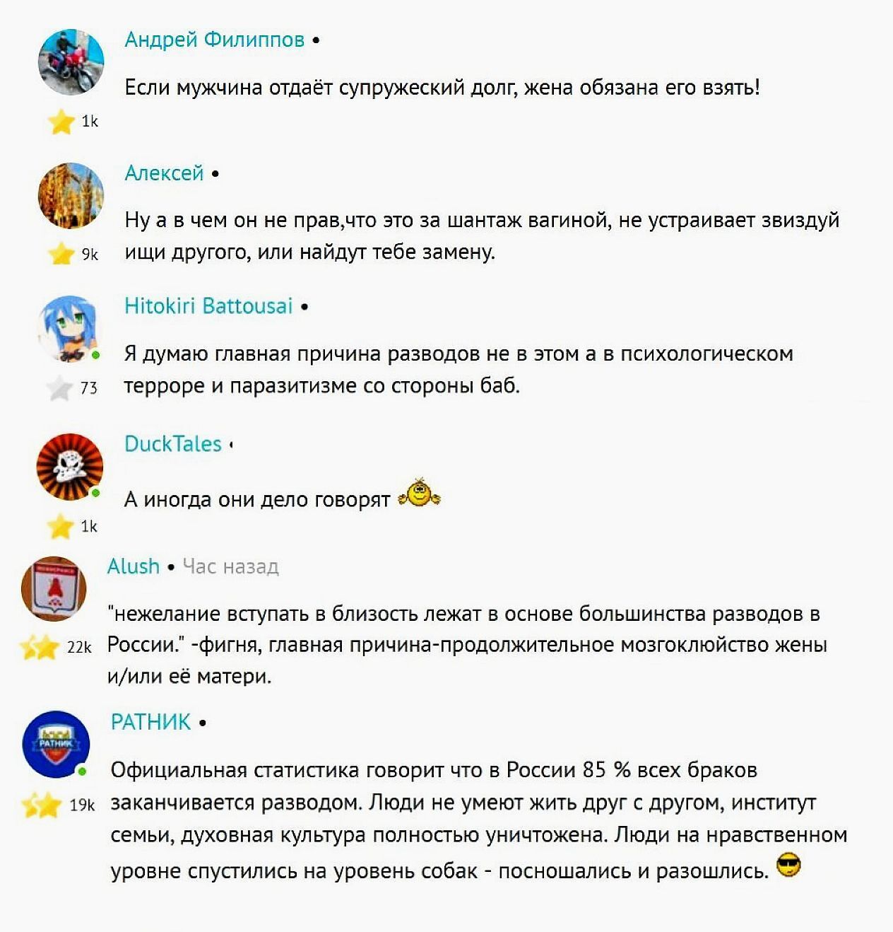 Честные и искренние жители Сети поддержали носителя Правды и начали бесстрашно разоблачать «вагинальный шантаж» и злобных тёщ.