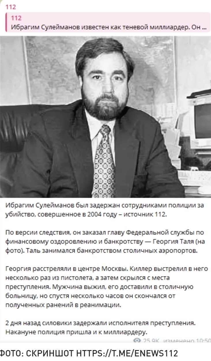 Следствие копает под Сулейманова из-за убийства бывшего главы ФСФР Георгия Таля, которое произошло в далеком 2004-м.
