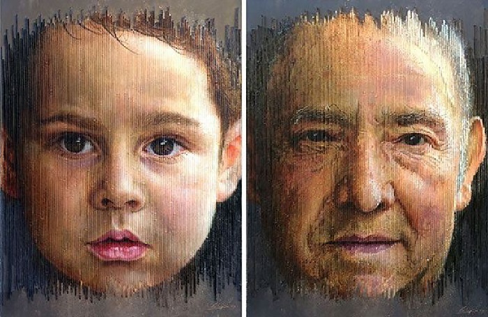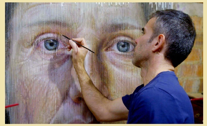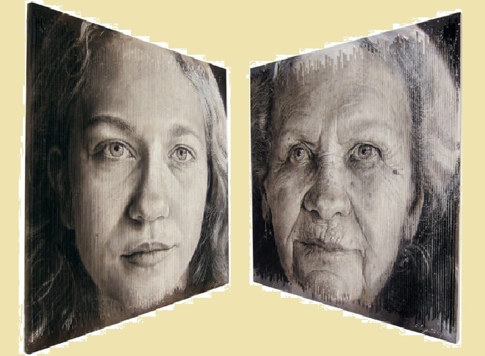 Спасибо большое! Работы этого художника выше всяких похвал! Впервые такое вижу...В сети нашла статью «Иллюзорная магия превращения на 3-D портретах художника-самоучки Серджи Каденаса», в которой написано следующее... «Экспериментируя с созданием трехмерных иллюзий на гофрированном холсте, Серджи использует собственную живописную технику и создает уникальные портреты...На одной картинной плоскости обычными красками мастер умудряется разместить два диаметрально противоположных изображения. И то, какое из них видит зритель, зависит от того, с какой стороны он рассматривает картину. На первый взгляд - секрет довольно прост для восприятия, но он невероятно сложен для создания. Художник со скрупулезной точностью и отточенным мастерством наносит два разных портрета карандашом, а после маслом на параллельные вертикальные полоски гофрированного холста, причем, таким образом, чтобы образы были пассивны в статике, а видимое изображение трансформировалось по мере того, с какого ракурса зритель смотрит на картину.» kulturologia.ru Все картины замечательные, но мне особенно понравились те из них, на которых на одном полотне изображен один и тот же человек: 1) в детстве и старости, 2) в молодости и старости (это смотря с какой стороны рассматриваешь данную картину). Удивительно! Спасибо еще раз!
