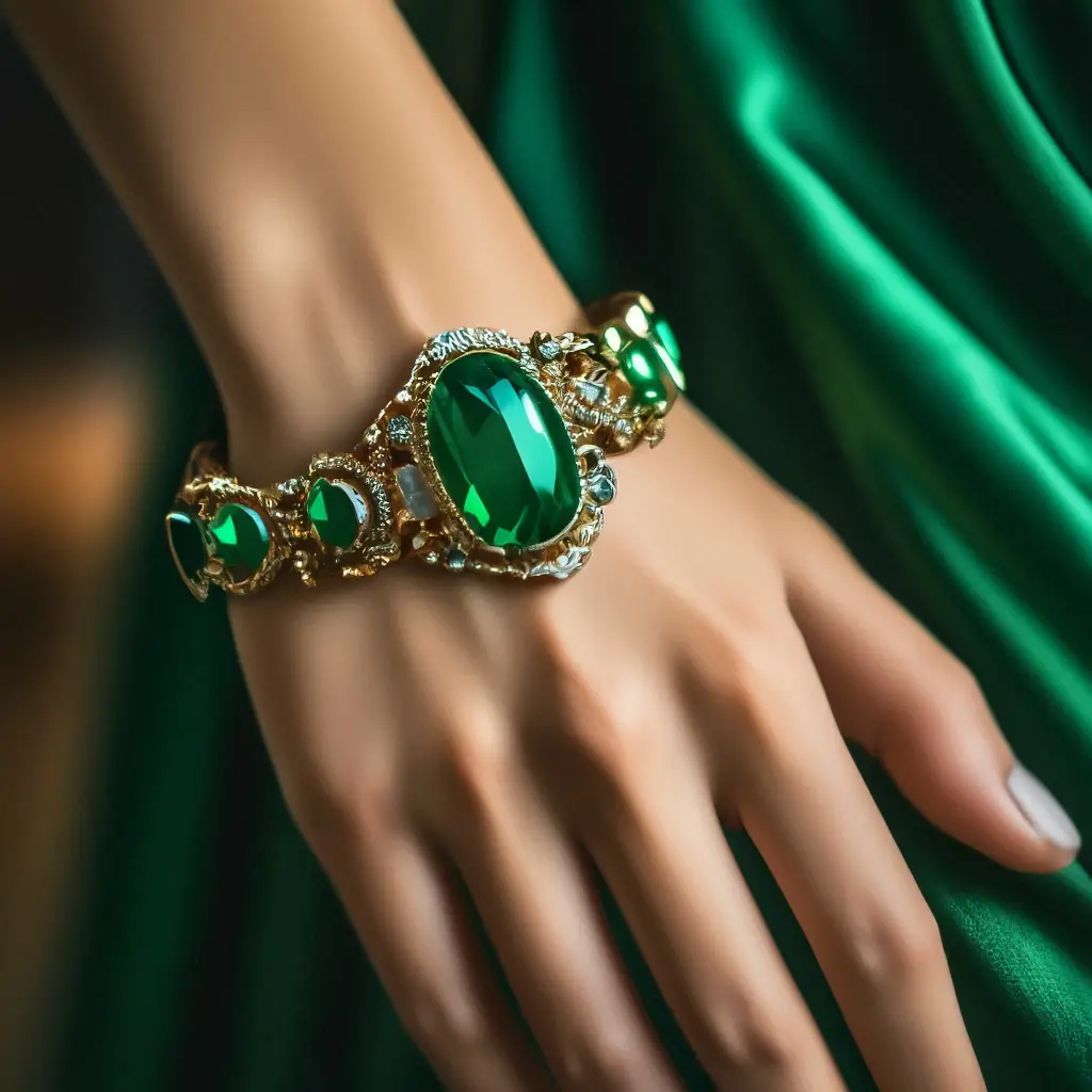 Я так понял это имитация изумрудов, настоящие изумруды сейчас, вроде, запредельно стоят.