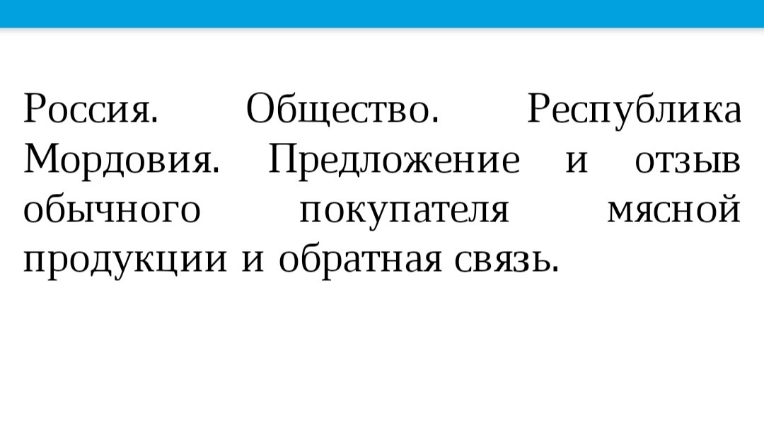 Россия. Общество. Республика Мордовия. Предложение и отзыв обычного покупателя мясной продукции и обратная связь.