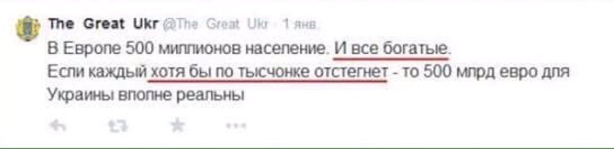Вот такая хуторская, упоротая бендеровщина вырастила в Малороссии 2 потерянных поколения с химерной брехней и на радость соросовским архитекторам оранжевого фашизма! Русские друг друга ненавидят и убивают на русской Украине, а у них всё в шоколаде, во фраке и шампанском ! Всё дело в том, что их никто не беспокоит. Судоплатова с "конфетами" надо подключать...