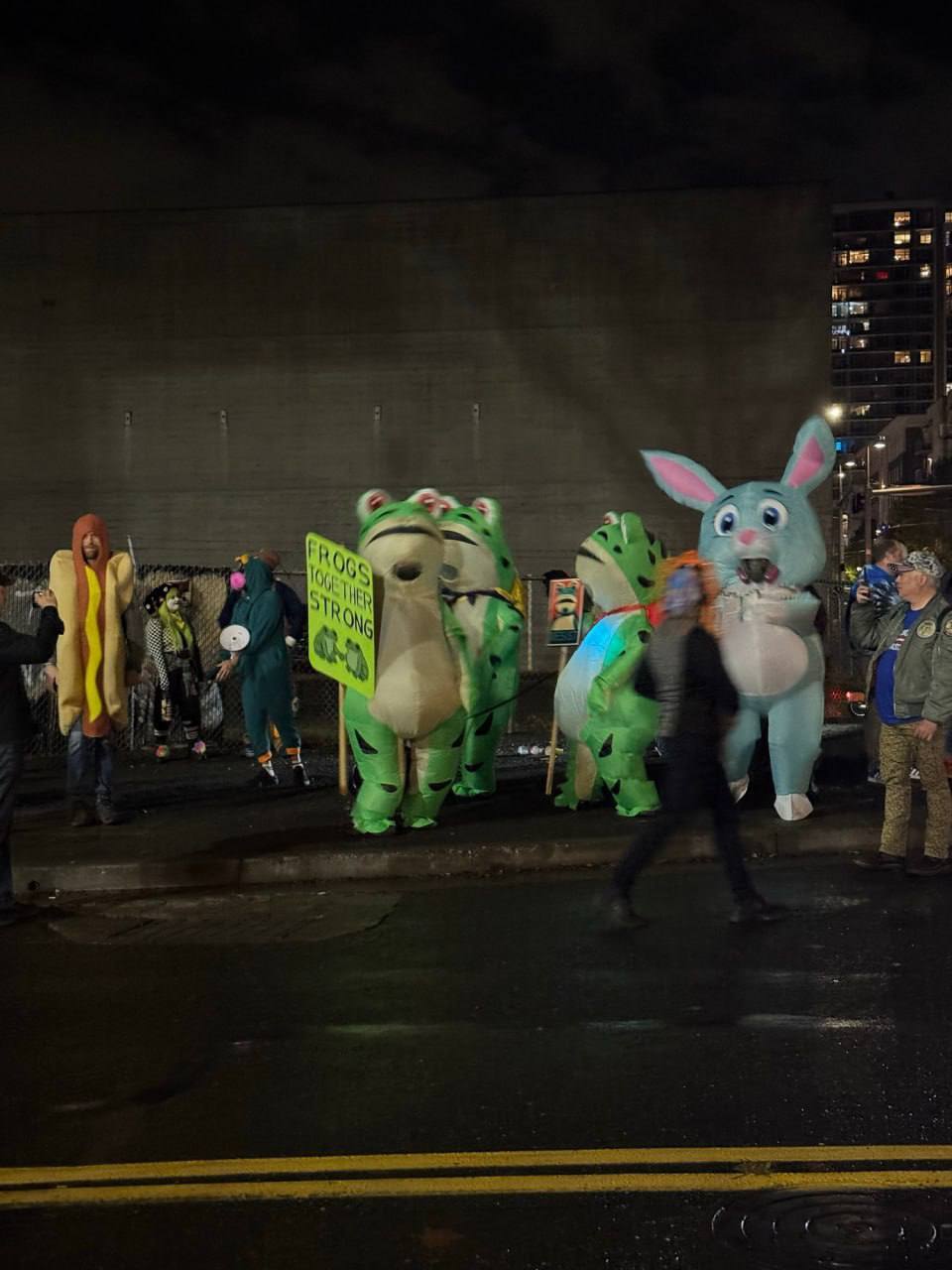 Теперь против Трампа на митингах в США выступают десятки людей в лягушачьих костюмах. Новый тренд даже получил имя — «Портлендская бригада лягушек».