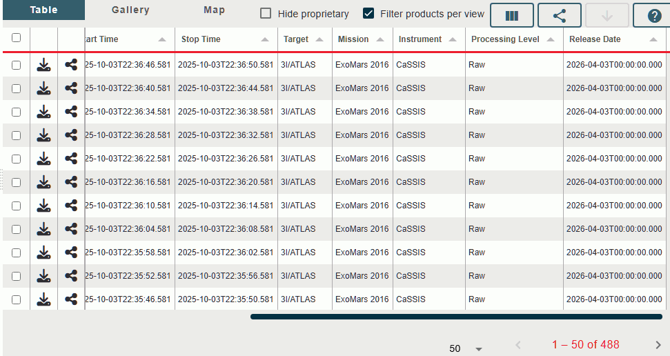 Согласно информации, доступной в Архиве планетарной науки ЕКА , публикуемые данные включают как первичные научные данные, так и телеметрические данные с прибора CaSSIS, установленного на борту аппарата ExoMars TGO.