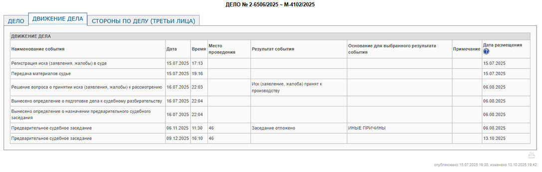 Уже висит инфа, что то самое предварительное заседание, назначенное на 6 ноября, перенесено на 9 декабря!