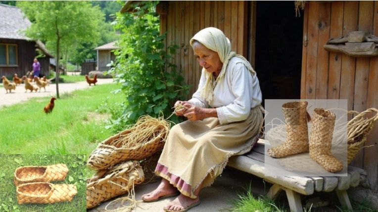 Лапти плели из лыка — специально нарезанной коры липы или осины. Эта кора была прочной, гибкой и не гнила быстро. А онучи — это такие портянки, но из грубой ткани или полотна. Их наматывали на босую ногу перед тем, как надеть лапти.